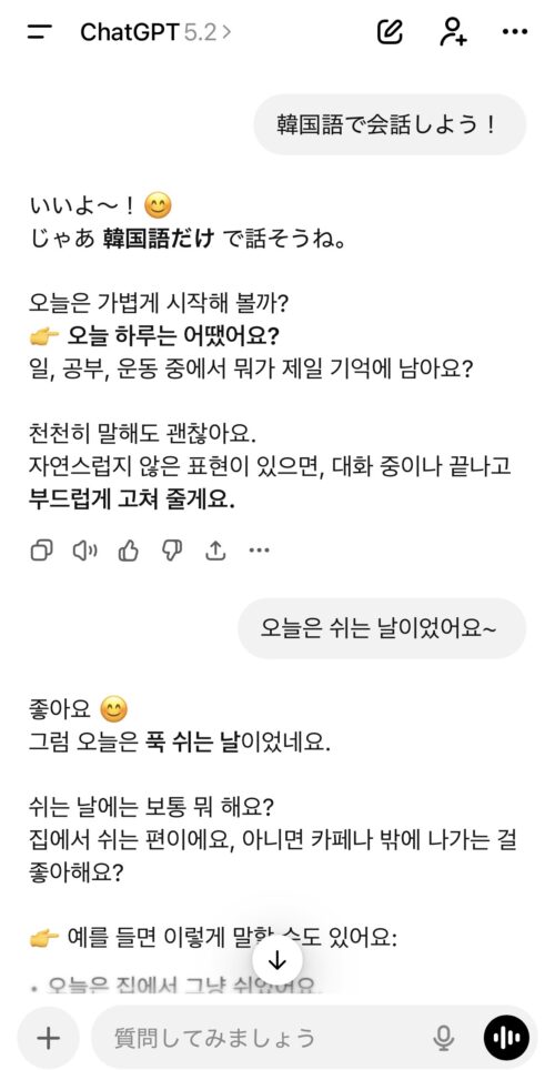 ・AIアプリのチャットで韓国語会話をしてみる