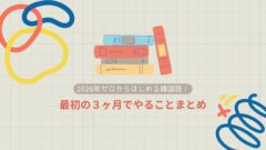 韓国語を始めてみたいけど、「何からやればいいの?」「ちゃんと続けられるかな…」そんなふうに思っていませんか?実は韓国語学習でいちばん大切なのは、最初の3ヶ月で迷わないことです。この記事では、2026年にゼロから韓国語を始める初心者さん向けに...