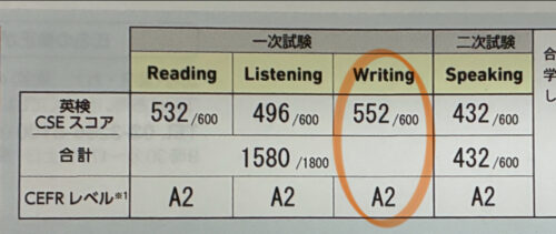 実は今回の英検で最も自信がなかったのがライティングでしたが、4技能の中で最高得点だったのもライティングでした。