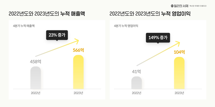 ミリの書斎が創立以来、年間売上560億ウォンを突破し、最大実績を達成した。国内最大の読書プラットフォームであるミリの書斎は2023年の実績を公開した。 ミリーの書斎の2023年監査報告書によると、ミリーの書斎2023年の売上高は前年比23%...